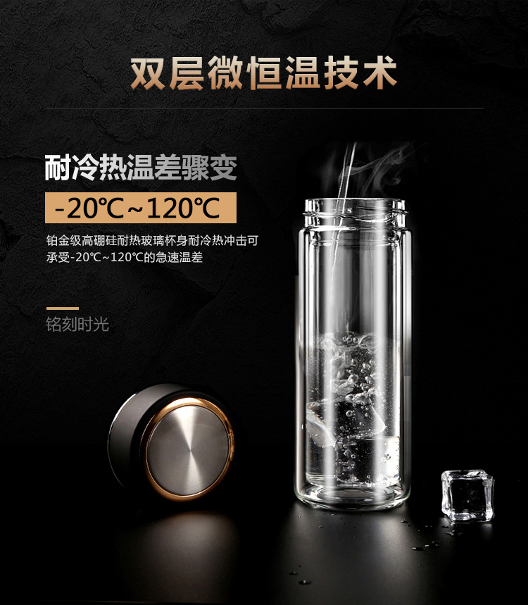 雙層玻璃杯,顧名思義就是杯子在制作時分為兩層,使用時可以起到隔熱防燙傷的作用,作為杯子產品中的重要一員,它在飲用水方面的優勢已經逐漸顯現,那么在外界溫度較低的情況下如何安全使用呢? 1、使用前,用中性洗滌劑清洗杯子和零件,可以減少殘留,保證健康。 2、使用雙層玻璃杯時,如果要裝熱水,先用熱水預熱;如果你想裝冰水,先用冷水沖洗,使用時,先預熱預冷瓶身,避免玻璃杯**次過冷過熱造成的傷害。 3、開水和茶水中注入雙層玻璃杯后,使用蓋子時,順時針擰緊蓋子,特別注意是否有防漏橡膠墊,如果是熱水,不要長時間打開,中間打開緩沖。倒入開水或其他飲料時,不宜過滿。 雙層玻璃杯因其表面光滑易清洗,不易滋生細菌、雜質、茶漬等,都不易附著,這為我們的飲水健康提供了···